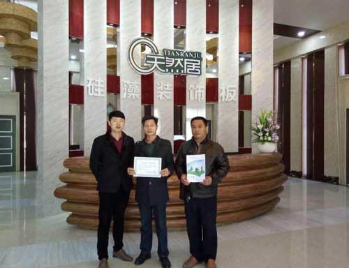 圖片資料:天然居硅藻板總經(jīng)理周強(qiáng)(左)與廣東河源高老板(中)留影